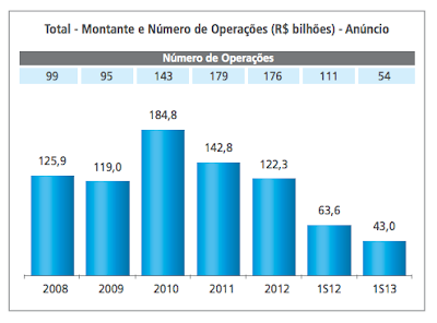 A desaceleração da economia brasileira atingiu em cheio as operações de fusões e aquisições. O