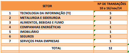 O número de fusões e aquisições realizadas no terceiro trimestre de 2014 envolvendo empresas brasileiras