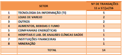 FUSÕES E AQUISIÇÕES – DESTAQUES DA SEMANA DE 11 a 17/jul/16 19 de julho de 201631 de outubro de 2020 Portal de Fusões e Aquisições Anunciadas 14 operações de Fusões e Aquisições com destaque pela imprensa na semana de 11