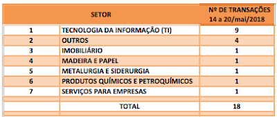 Divulgadas 18 operações de Fusões e Aquisições com destaque pela imprensa na semana de 14