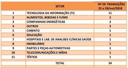 Divulgadas 24 operações de Fusões e Aquisições com destaque pela imprensa na semana de 22