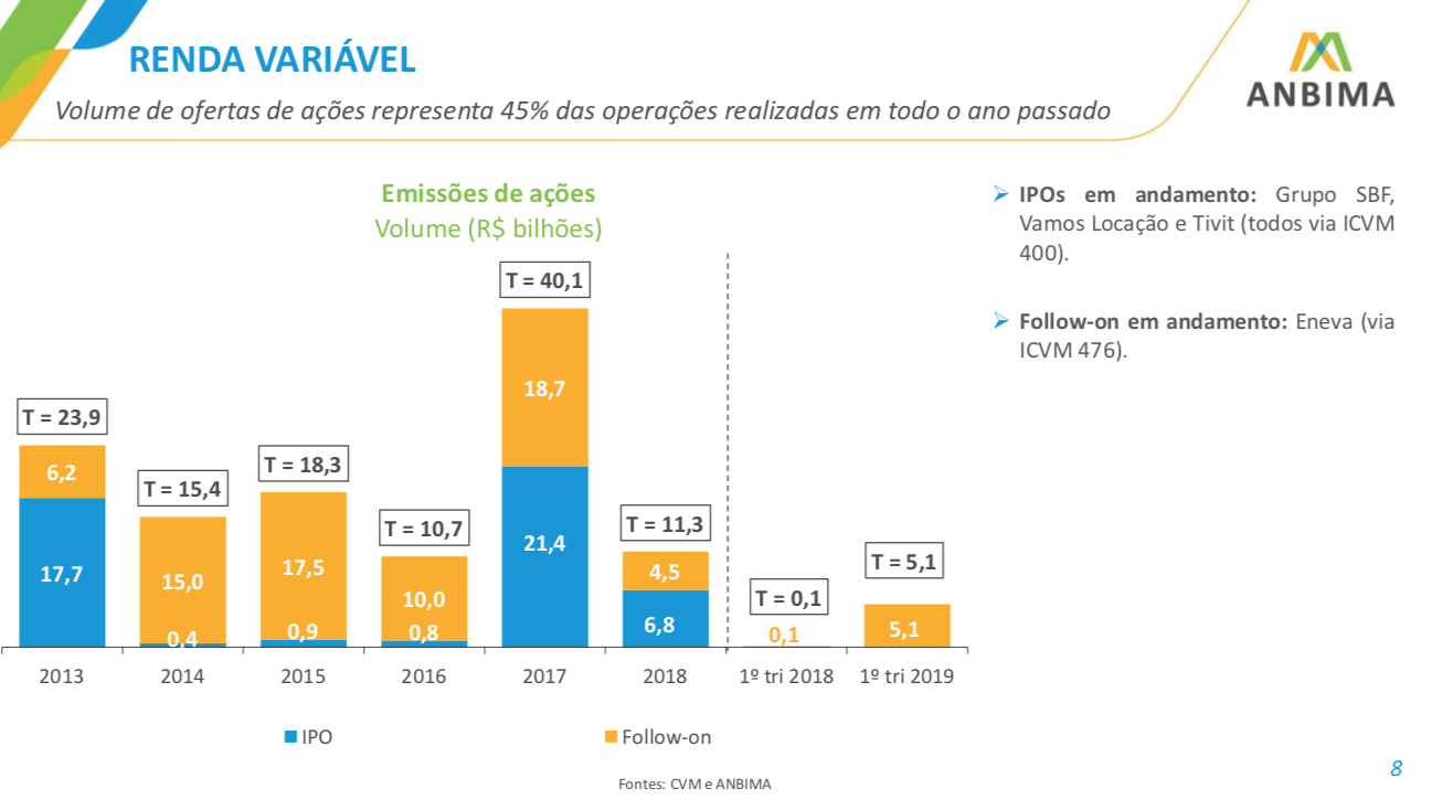 Mercado de capitais movimenta R$ 66,8 bilhões no primeiro trimestre de 2019 16 de abril de 201931 de outubro de 2020 Portal de Fusões e Aquisições As operações das empresas brasileiras no mercado de capitais somaram R$ 66,8 bilhões no primeiro
