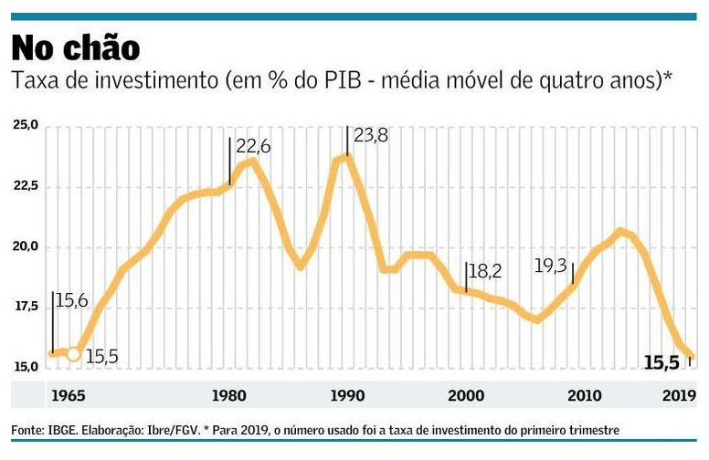 A taxa de investimento no Brasil está no menor nível em pouco mais de 50