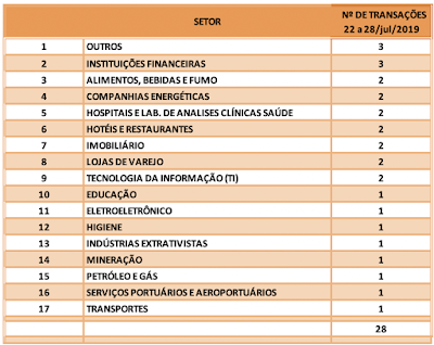 Fusões e Aquisições – destaques da semana 22 a 28/jul/2019 29 de julho de 201931 de outubro de 2020 Portal de Fusões e Aquisições Divulgadas 28 operações de Fusões e Aquisições com destaque pela imprensa na semana de 22