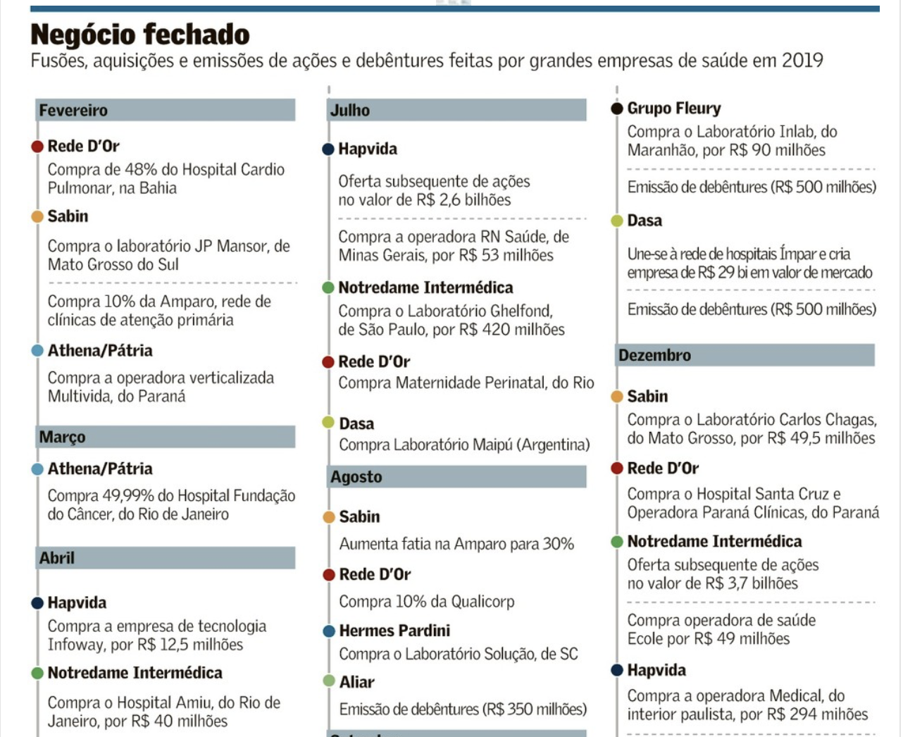 Setor de saúde bate recorde em fusões e aquisições neste ano 20 de dezembro de 201931 de outubro de 2020 Portal de Fusões e Aquisições O setor de saúde vai encerrar o ano com pelo menos 80 fusões e aquisições