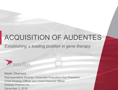 Astellas fecha compra de empresa de tecnologias de terapia genética 5 de dezembro de 201931 de outubro de 2020 Portal de Fusões e Aquisições A Astellas Pharma concordou em comprar a Audentes Therapeutics por cerca de US$ 3 bilhões,