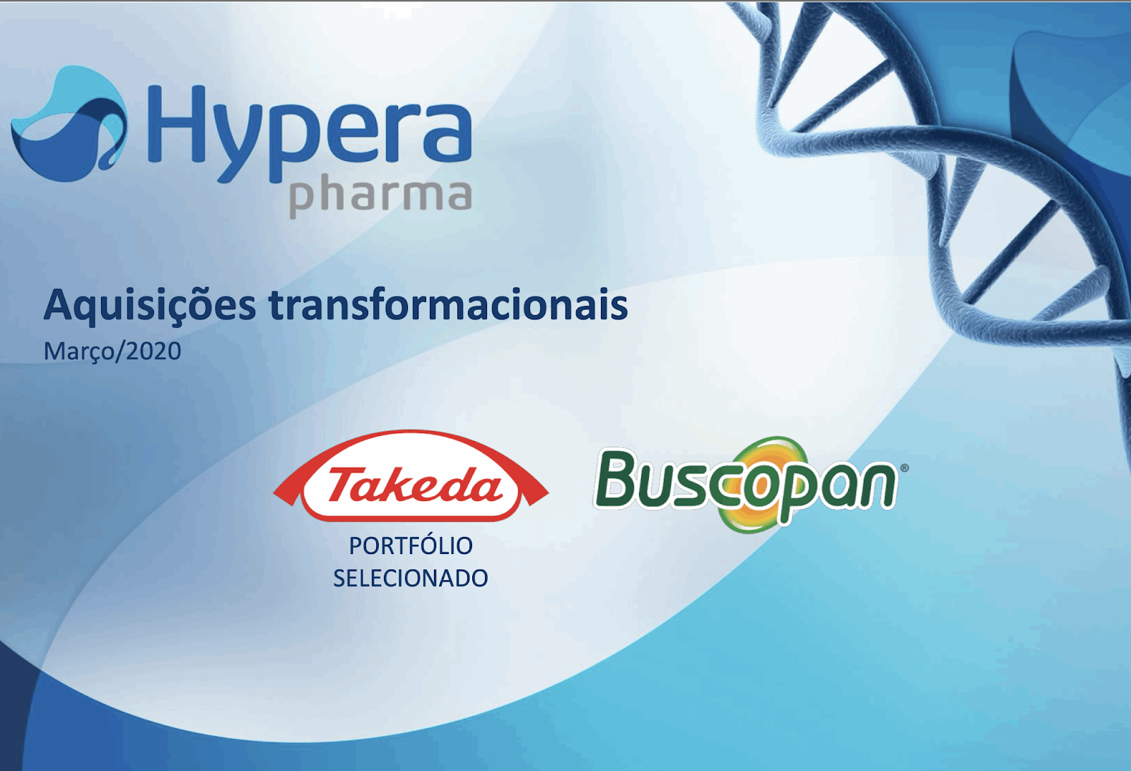 Hypera compra portfólio de 18 medicamentos da Takeda por US$ 825 milhões 2 de março de 202031 de outubro de 2020 Portal de Fusões e Aquisições Com a conclusão da transação e a recente aquisição da marca Buscopan, a Hypera Pharma