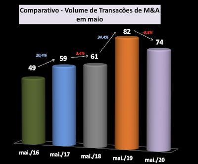 Fusões e aquisições têm queda anual em maio, mas sobem ante abril, aponta PwC 29 de junho de 202030 de outubro de 2020 Portal de Fusões e Aquisições Para sócio da consultoria e auditoria, alta é indício de cenário em que empresas fragilizadas