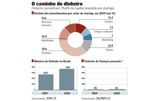 Empresas atraem aportes milionários 31 de julho de 202030 de outubro de 2020 Portal de Fusões e Aquisições Fintechs foram a categoria de startups que mais arrecadou investimentos no país em 2019 Fintechs