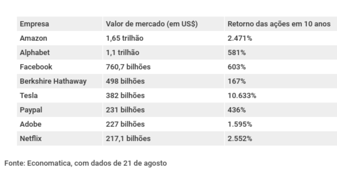 Amazon, Tesla e Netflix: as gigantes que não pagam dividendos há 10 anos 25 de agosto de 202030 de outubro de 2020 Portal de Fusões e Aquisições Empresas estão entre as oito maiores em valor de mercado que não remuneraram os acionistas
