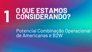 Lojas Americanas e B2W estudam combinação de operações 19 de fevereiro de 202120 de fevereiro de 2021 Portal de Fusões e Aquisições A decisão ocorre em um momento de forte avanço do comércio eletrônico por conta da