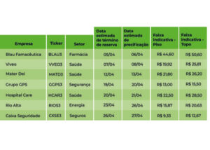 Sete empresas estreiam na B3 em abril; confira a lista dos próximos IPOs 7 de abril de 2021 Portal de Fusões e Aquisições O IPO da Caixa Seguridade é um dos que mais chamam a atenção dos investidores
