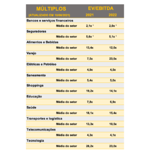 Múltiplos: EV/Ebitda por empresa e média do setor – jun/21 14 de junho de 202114 de junho de 2021 Portal de Fusões e Aquisições A XP publica em seu site a Tabela atualizada de múltiplos. Com a finalidade de