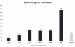 Mercado de criptomoedas continua aquecido com fusões e aquisições em 2022 28 de março de 2022 Portal de Fusões e Aquisições O ano de 2022 acumula 41 transações de fusões e aquisições relacionadas a criptomoedas. Estamos
