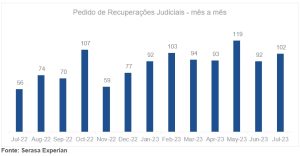 Aumento de 82,1% nos pedidos de recuperações judiciais em julho, revela Serasa Experian 29 de agosto de 202329 de agosto de 2023 Portal de Fusões e Aquisições Mais de 100 empresas fizeram requerimentos no mês, ante 56 companhias em 2022. Solicitações de