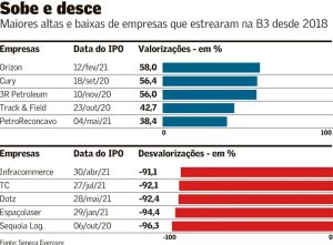 De 74 IPOs desde 2018, só 18% tiveram alta de preço 27 de outubro de 2023 Portal de Fusões e Aquisições Apenas 18% das empresas que abriram capital desde 2018 na bolsa brasileira conseguiram manter suas