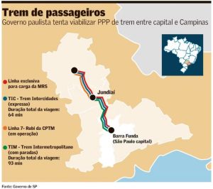 Leilão de trem de passageiros entre São Paulo e Campinas atrai interesse da CCR e chinesa CRRC 20 de fevereiro de 2024 Portal de Fusões e Aquisições O leilão da PPP do Trem Intercidades (TIC) de São Paulo a Campinas, marcado para