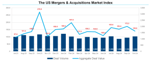 Fusões e aquisições nos EUA em outubro de 2024: crescimento de 9,1% no volume e queda de 18,9% nos investimentos 20 de novembro de 202421 de novembro de 2024 Portal de Fusões e Aquisições A atividade de negócios de M&A nos EUA aumentou em outubro, subindo 9,1% com 1.202