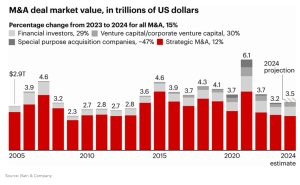 Fusões e Aquisições em 2024: O valor global deverá atingir US$ 3,5 trilhões, crescimento de 15% 17 de dezembro de 202421 de dezembro de 2024 Portal de Fusões e Aquisições O ano de 2024 será para os livros de história como um bom ano para