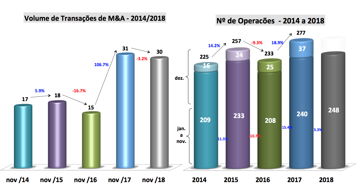 TI – RADAR de Fusões e Aquisições, em novembro/2018 20 de dezembro de 20182 de outubro de 2023 Portal de Fusões e Aquisições Crescimento dos investimentos e queda do volume dos negócios de fusões e aquisições de empresas