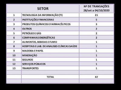 Fusões e Aquisições – destaques da semana 28/set a04/out/2020 5 de outubro de 20202 de outubro de 2023 Portal de Fusões e Aquisições Divulgadas 42 operações de Fusões e Aquisições com destaque pela imprensa na semana de 28/set