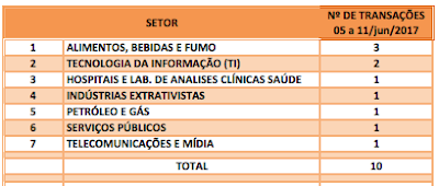 FUSÕES E AQUISIÇÕES – DESTAQUES DA SEMANA DE 26/jun a 02/jul/2017 3 de julho de 20172 de outubro de 2023 Portal de Fusões e Aquisições Anunciadas 19 operações de Fusões e Aquisições com destaque pela imprensa na semana de 26/jun