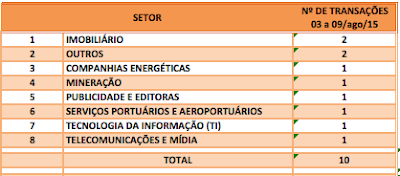 FUSÕES E AQUISIÇÕES – DESTAQUES DA SEMANA DE 03 a 09/ago/15 12 de agosto de 201531 de outubro de 2020 Portal de Fusões e Aquisições Anunciadas 10 operações de Fusões e Aquisições com destaque pela imprensa na semana 03 a
