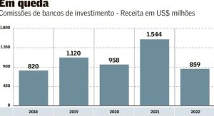 Seca de IPOs faz receitas de bancos de investimento caírem 44% 24 de janeiro de 2023 Portal de Fusões e Aquisições O período de mais de um ano sem debutes na bolsa brasileira trouxe uma “ferida”