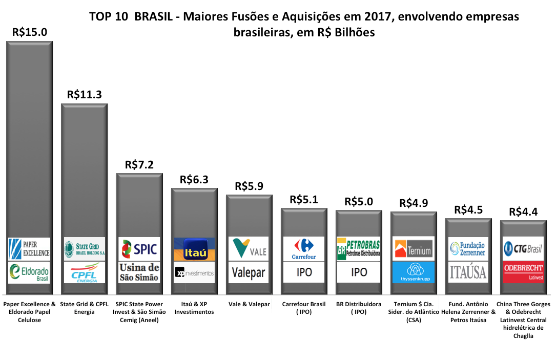TOP 10 BRASIL – As 10 maiores Fusões e Aquisições em 2017 7 de janeiro de 201831 de outubro de 2020 Portal de Fusões e Aquisições As 10 maiores transações de M&A realizadas em 2017, envolvendo empresas brasileiras – com valores
