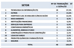 Fusões e Aquisições – destaques da semana 07 a 13/fev/2022 22 de fevereiro de 20222 de outubro de 2023 Portal de Fusões e Aquisições Divulgadas 48 operações de Fusões e Aquisições com destaque pela imprensa na semana de 07