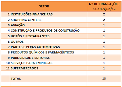 FUSÕES E AQUISIÇÕES – DESTAQUES DA SEMANA DE 11 a 17/jun/12. 18 de junho de 20122 de outubro de 2023 Portal de Fusões e Aquisições Divulgadas 13 operações de Fusões e Aquisições com destaque pela imprensa, na semana de 11